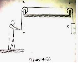 - Qstn #8List all the forces acting on (a) the pulley A, (b) the boy and (c) the block C in figure.