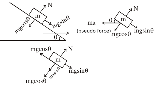 The block is at equilibrium w.r.t. to wedge. Therefore,