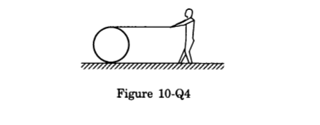 - Qstn #26A string of negligible thickness is wrapped several times around a cylinder kept on a rough horizontal surface. A man standing at a distance l from the cylinder holds one end of the string and pulls the cylinder towards him (figure 10-Q4). There is no slipping anywhere. The length of the string passed through the hand of the man while the cylinder reaches his hands is