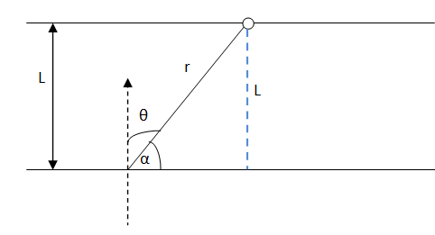 `` \,\mathrm{\,I\,}=\frac{{\,\mathrm{\,I\,}}_{\,\mathrm{\,o\,}}\,\mathrm{\,cos\,}\left({90}^{0}-\,\mathrm{\,\alpha \,}\right)}{{\,\mathrm{\,r\,}}^{2}}``