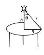 - #13A student is studying a book placed near the edge of a circular table of radius R. A point source of light is suspended directly above the centre of the table. What should be the height of the source above the table so as to produce maximum illuminance at the position of the book?Ans :