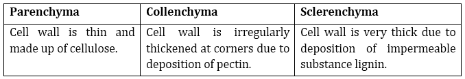 - Qstn #4Differentiate between parenchyma, collenchyma and sclerenchyma on the basis of their cell wall.Ans :