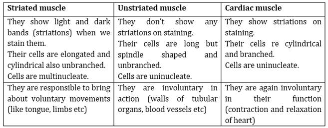 - Qstn #8Differentiate between striated, unstriated and cardiac muscles on the basis of their structure and site/location in the body.Ans :