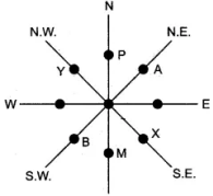 From B — A is in N. E. Direction From A — B is in S. W. Direction From Y — X is in S. E. Direction From P — M is in South Direction From M — P is in North Direction From X — Y is in N. W. Direction - Bearing: Direction can be indicated by a system of angular bearing. Bearing is the horizontal angle between the North and line joining the position- of the observer and the object in a clockwise direction. The bearing from the observer to the object is called forward bearing (FB). The bearing from the object to the observer is called backward bearing (BB).
