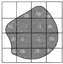 - Square covered less than half are taken as 1/3 squares.