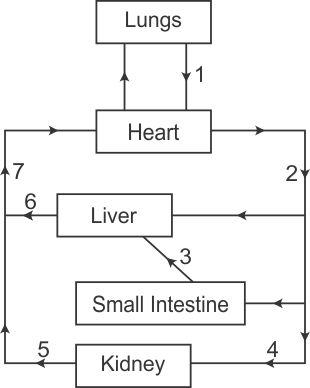 - #4-a-iName the blood vessels 1, 3, 6 and 7.Ans : 1 - Pulmonary vein,