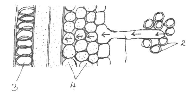 - #2-a-iName the parts indicated by the guidelines 1 to 4.Ans : 1. Root hair 2. Soil water 3. Xylem Vessels 4. Cortical cells.