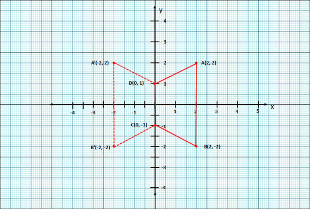 - #5-c-iReflect quadrilateral ABCD on the y-axis and name it as A'B'CD.Ans : Refer to the graph
