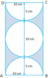Area of the circles and semi circles ``= 2 \times \pi r^2 = 2 \times 3.14 \times 5^2 = 157 \ cm^2 ``