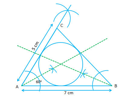 - #6-a [3]Using a ruler and a compass construct a triangle ABC in which AB = 7 cm, ∠CAB = 60° and