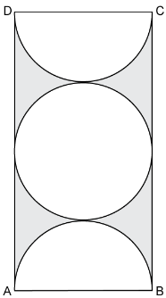 - #4-b [3]In the given figure ABCD is a rectangle. It consists of a circle and two semi-circles each of
