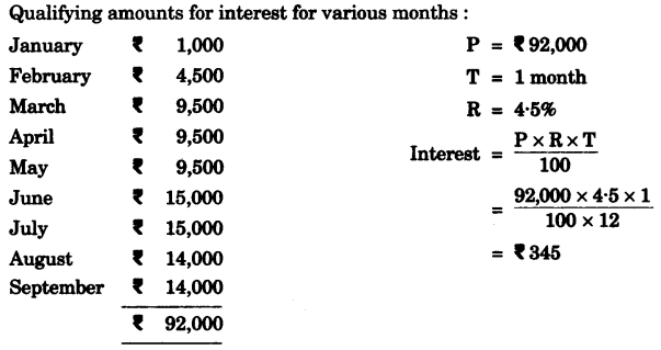 Rate of interest paid by the bank is 4.5% per annum. Mr. Mishra closes his account on 30th October, 2007. Find the interest he receives.Date Particulars Withdrawals (in Rs.) Deposits (in Rs.) Balance (in Rs.) Jan. 4, 2007 By Cash - 1000.00 1000.00 Jan. 11, 2007 By Cheque - 3000.00 4000.00 Feb. 3, 2007 By Cash - 2500.00 6500.00 Feb. 7, 2007 To Cheque 2000.00 - 4500.00 March 3, 2007 By Cash - 5000.00 9500.00 March 25, 2007 By Cash - 2000.00 11,500.00 June 7, 2007 By Cash - 3500.00 15000.00 Aug. 29, 2007 To Cheque 1000.00 - 14000.00 Ans :