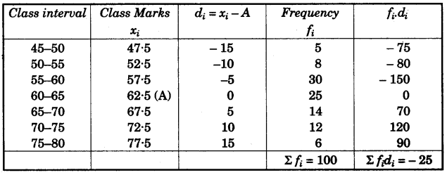 Calculate the mean by the short cut method.Wages in Rs. 45-50 50-55 55-60 60-65 65-70 70-75 75-80 No. of workers 5 8 30 25 14 12 6 Ans :