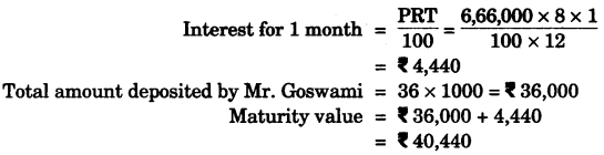 - #10-a [3]Mrs. Goswami deposits Rs. 1000 every month in a recurring deposit account for 3 years at 8% interest per annum. Find the matured value.Ans :
