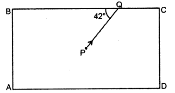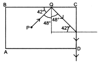 critical angle 42°. Complete the path of the ray PQ till it emerges out of the block. [Write necessary angles.]