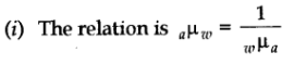 - #2-b-iWhat is the relation between the refractive index of water with respect to air(aμw) and the refractive index of air with respect to water (wμa)Ans :