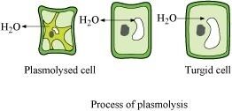 - #8-aWith the help of well-labelled diagrams, describe the process of plasmolysis in plants, giving appropriate examples.Ans : Plasmolysis can be defined as the shrinkage of the cytoplasm of a plant cell, away from its cell wall and toward the centre. It occurs because of the movement of water from the intracellular space to the outer-cellular space. This happens when the plant cell is placed in a hypertonic solution (i.e., a solution having more solute concentration than the cell cytoplasm). This causes the water to move out of the cell and toward the solution. The cytoplasm of the cell shrinks and the cell is said to be plasmolysed. This process can be observed in an onion peel kept in a highly concentrated salt solution.